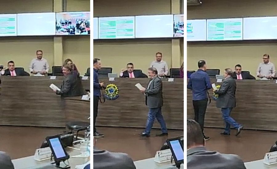 Vilmar cumprimentou todos os vereadores presentes no plenário, mas pulou o presidente da Câmara de Aparecida, André Fortaleza.