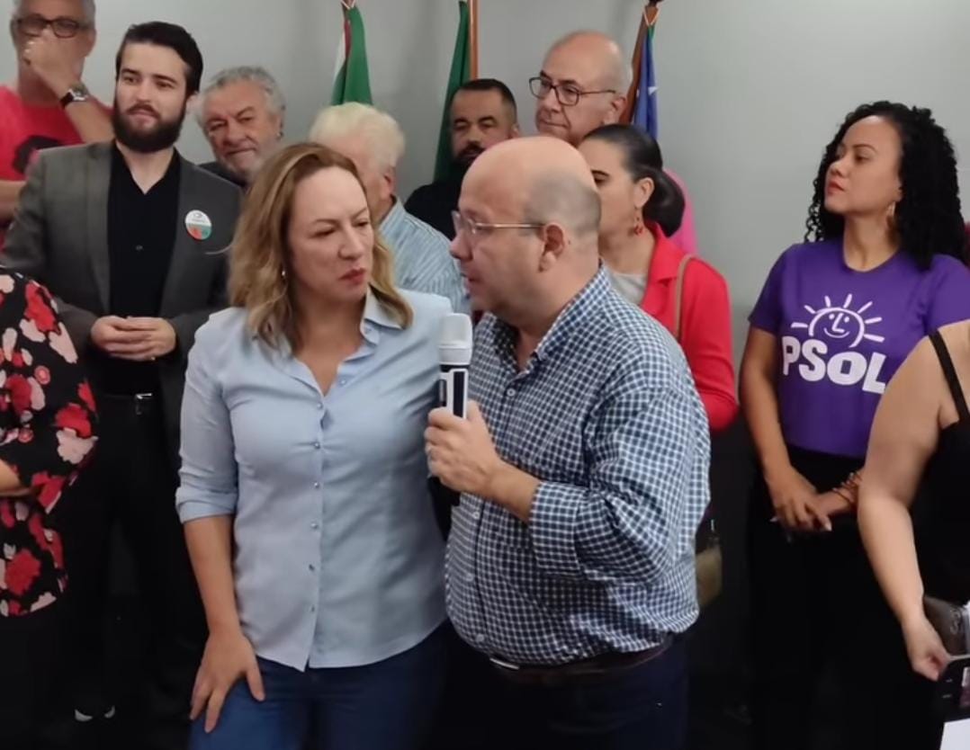 Deputada federal ao lado de Noleto durante o lançamento de sua campanha para a prefeitura de Goiânia | Foto: Reprodução