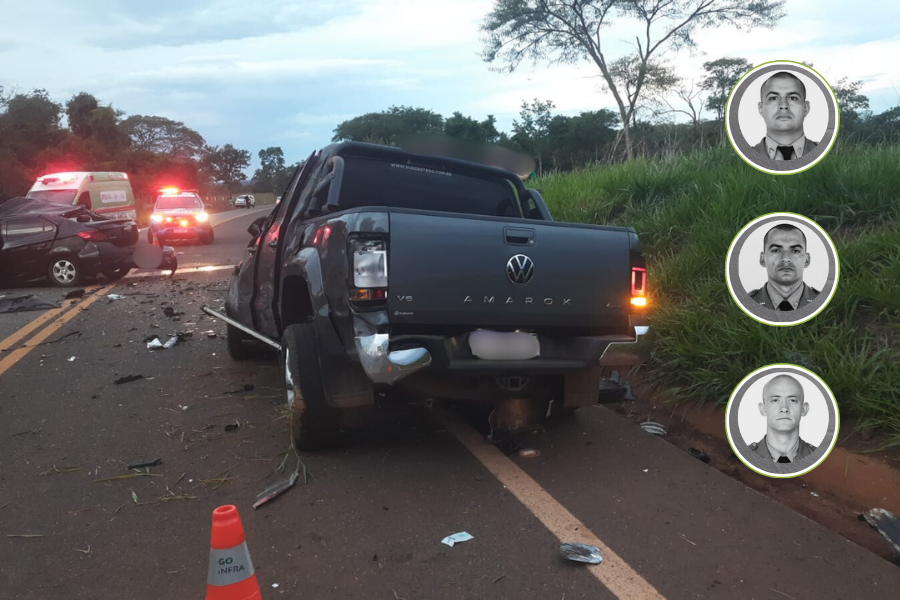 Três policiais militares morreram em um grave acidente de trânsito registrado na tarde desta 5ª-feira (25) na GO-164, no distrito de Novo Planalto, em Firminópolis, região oeste de Goiás.