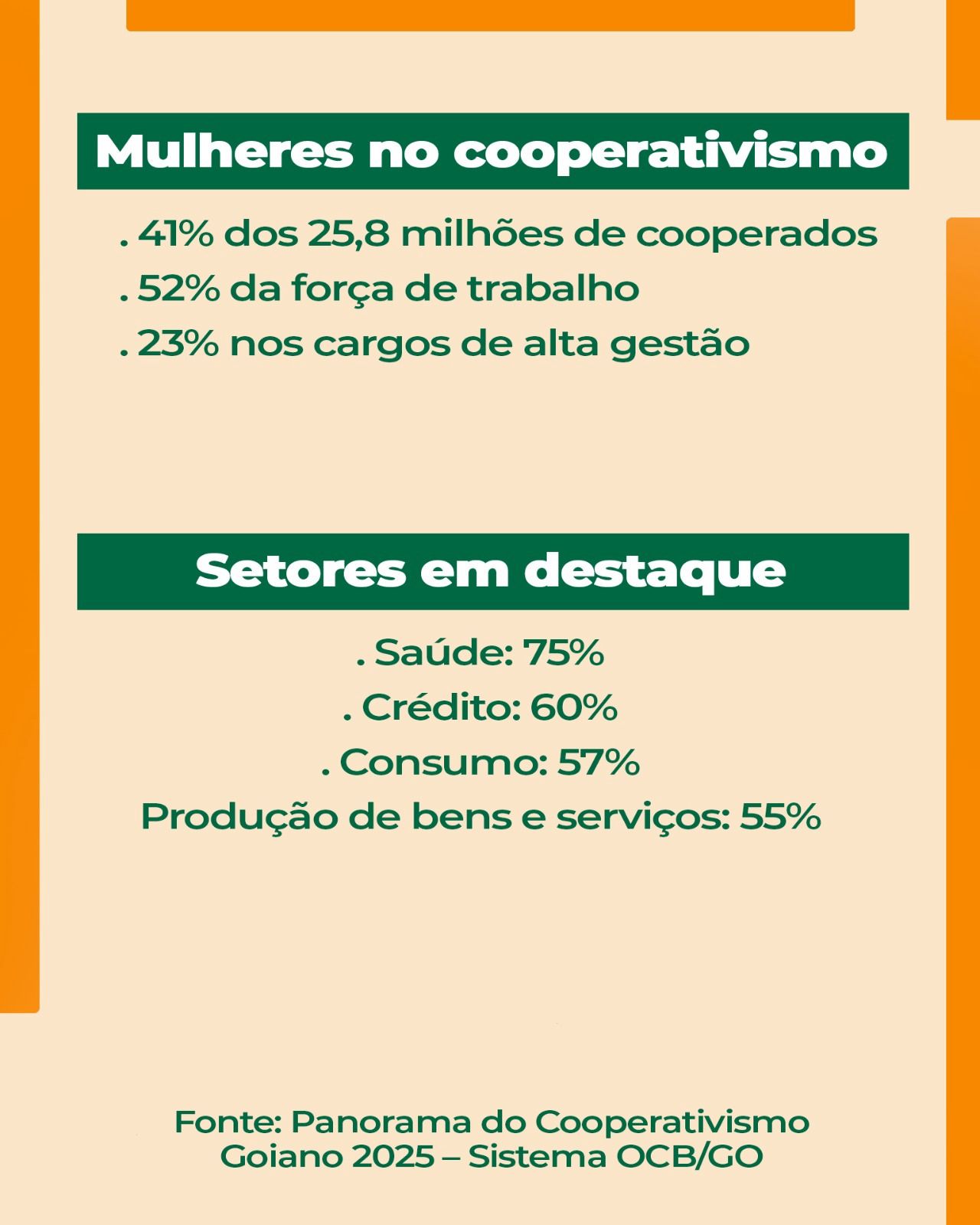 Em Goiás, das 266 cooperativas existentes, 49 são presididas por mulheres, número expressivo que coloca o estado acima da média nacional.