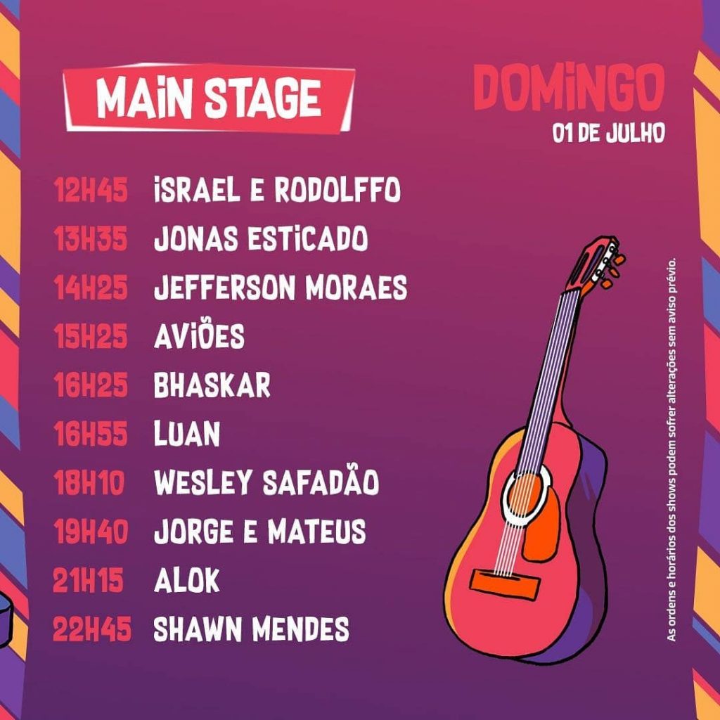 Além de Shawn, também tocarão no domingo, no palco principal, Alok, Aviões, Israel & Rodolffo, Jefferson Moraes, Jonas Esticado, Jorge & Mateus, Luan e Wesley Safadão.