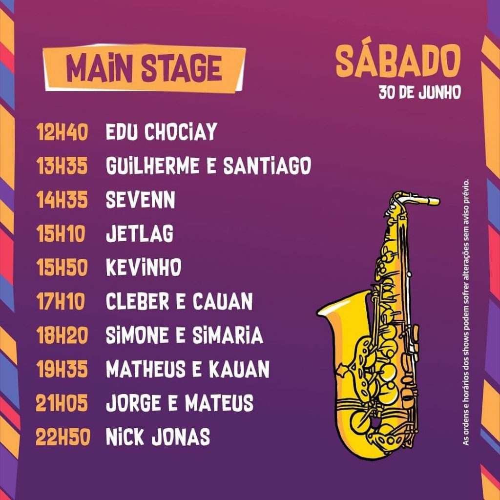 No palco principal, Cleber & Cauan, Edu Chociay, Guilherme & Santiago, Jorge & Mateus, Kevinho, Matheus & Kauan e Simone & Simaria.