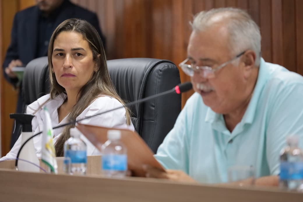 Vereadora Luciana observa o pronunciamento do vereador Luizão, o único a votar contra o relatório do TCM-GO | Foto: Rodrigo Estrela / Folha Z