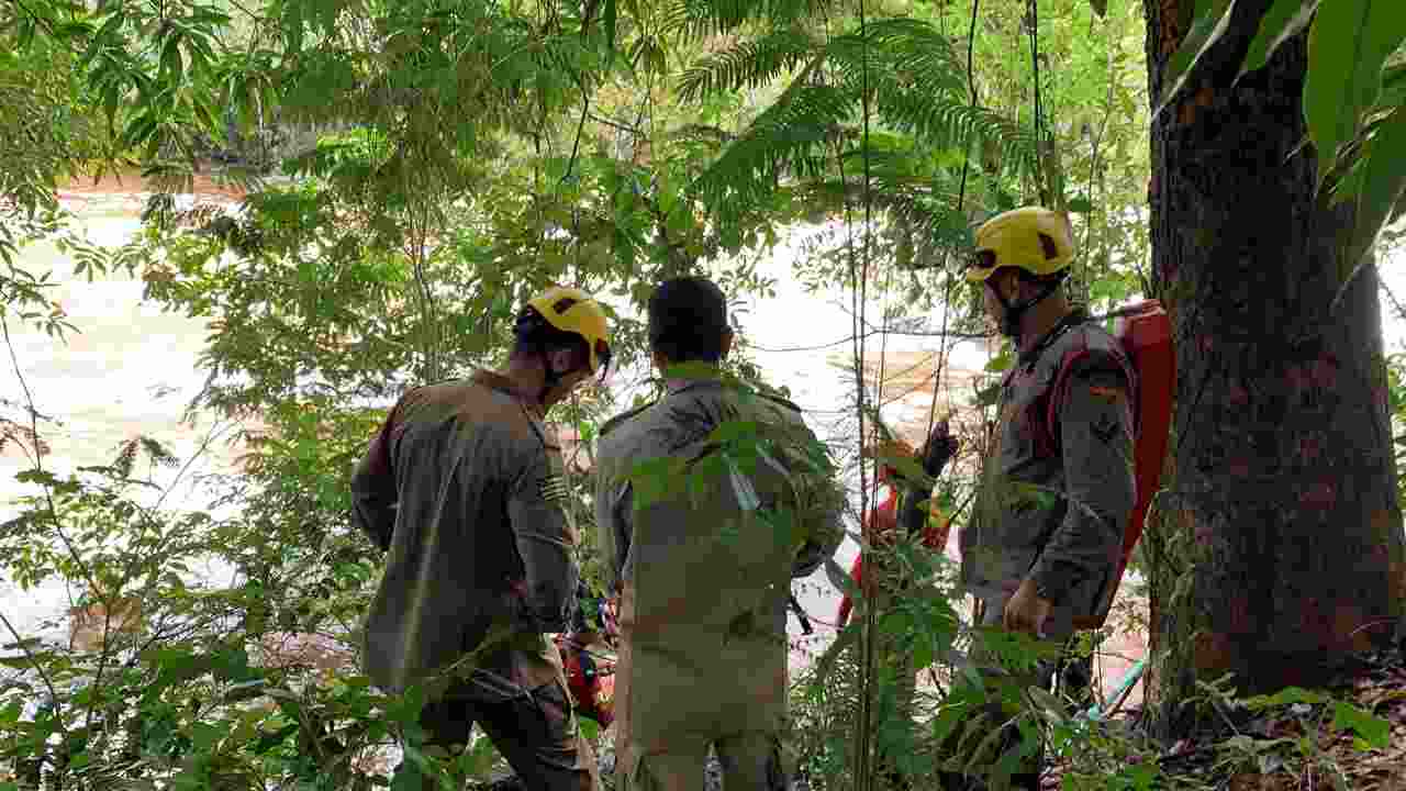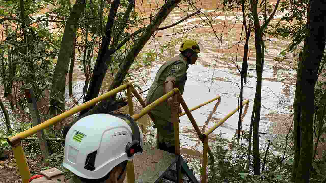 Uma equipe do Corpo de Bombeiros foi acionada para tentar o resgate, mas, horas depois, o funcionário segue desaparecido.