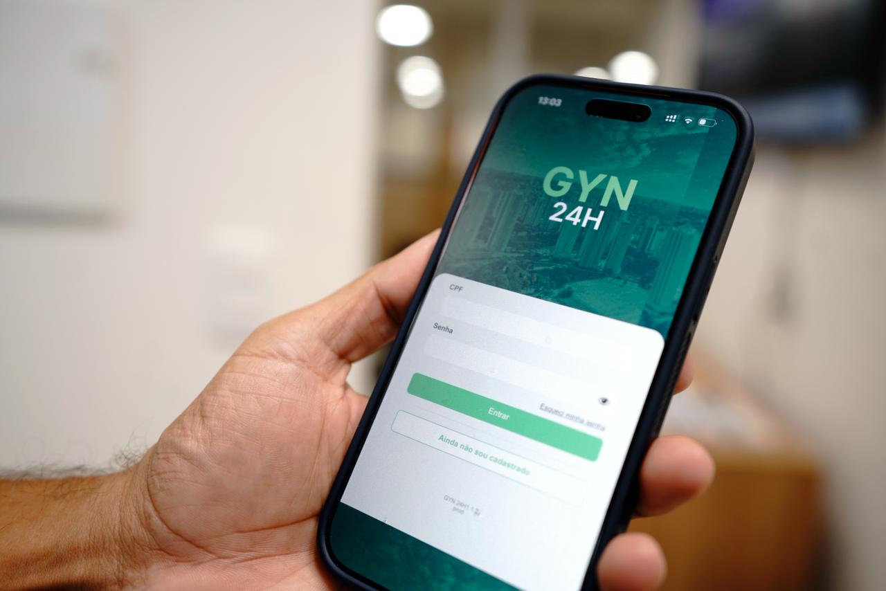 O aplicativo Gyn 24h, com mais de 500 mil downloads, permite acessar consultas de saúde e serviços municipais diretamente pelo celular.