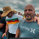 O ex-vereador Telêmaco Brandão (Novo) também passou pela caminhada e foi registrado junto com o ex-secretário de Desenvolvimento, Indústria, Comércio, Agricultura e Serviços (Sedicas), Diogo Franco.