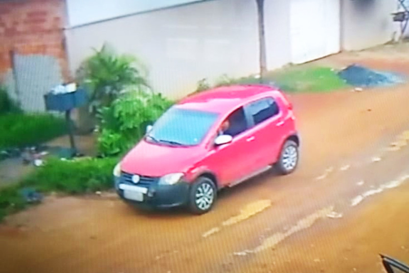 Segundo a PM, imagens de câmeras de segurança de um vizinho apontam que a dupla estava em um Volkswagen Crossfox vermelho.