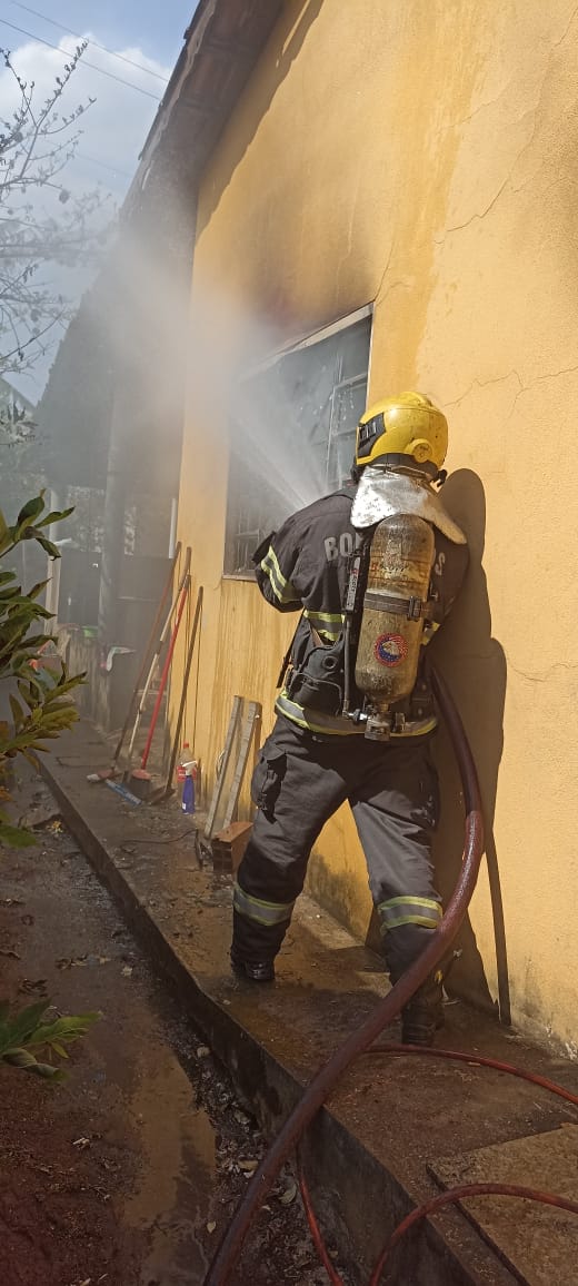 De acordo com a corporação, o incêndio se deu por conta de um botijão de gás.