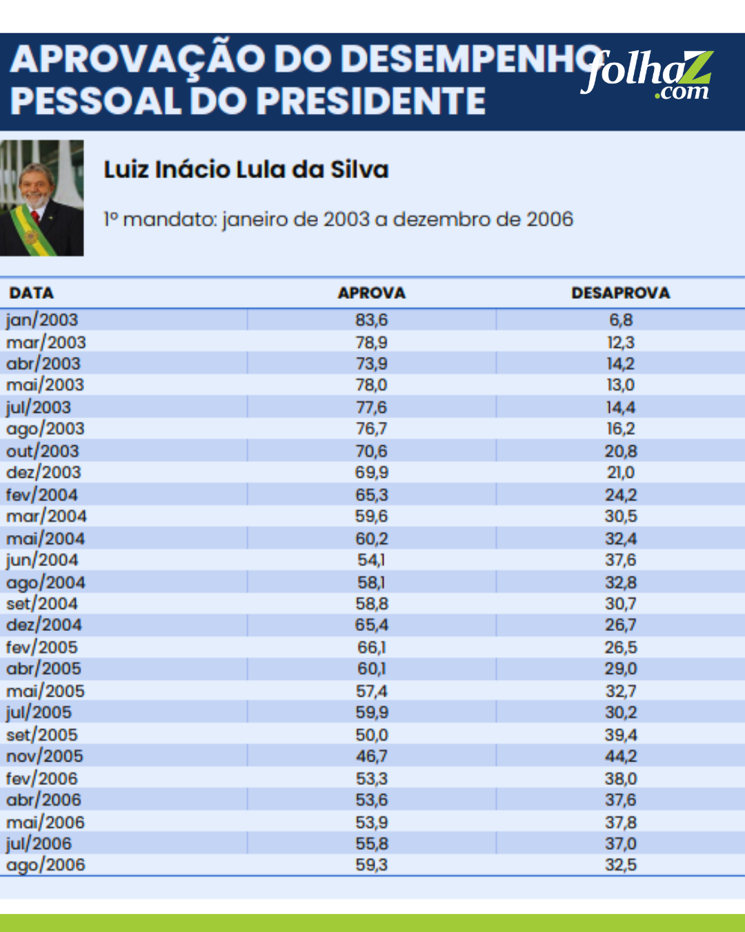 Série histórica da aprovação de Lula