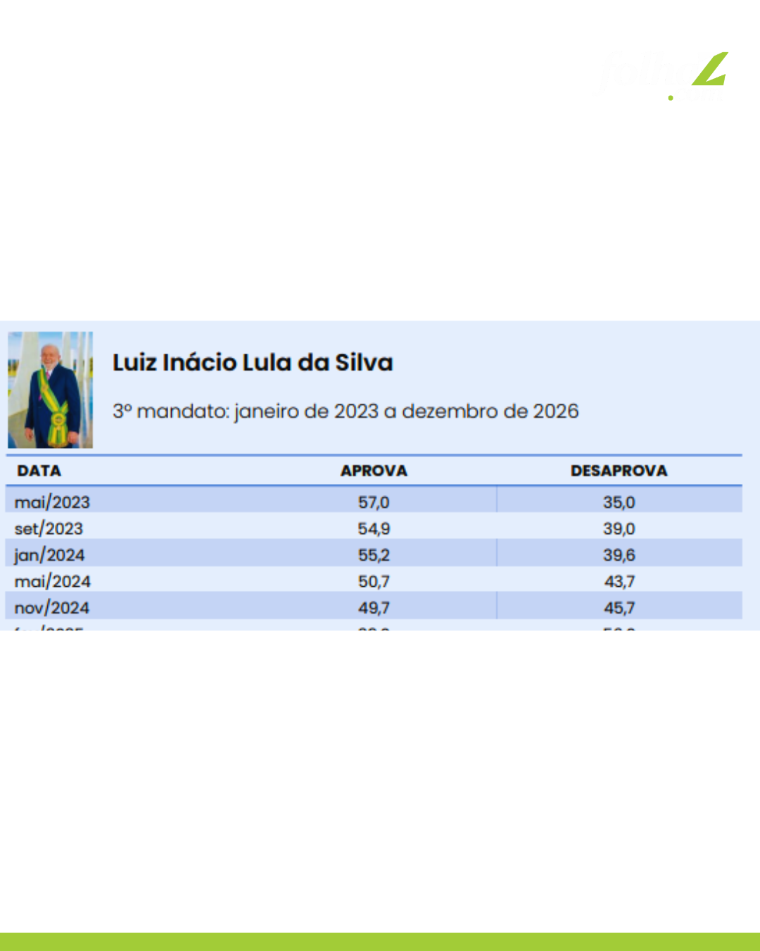 Comparação da aprovação e desaprovação de Lula no 3º mandato: