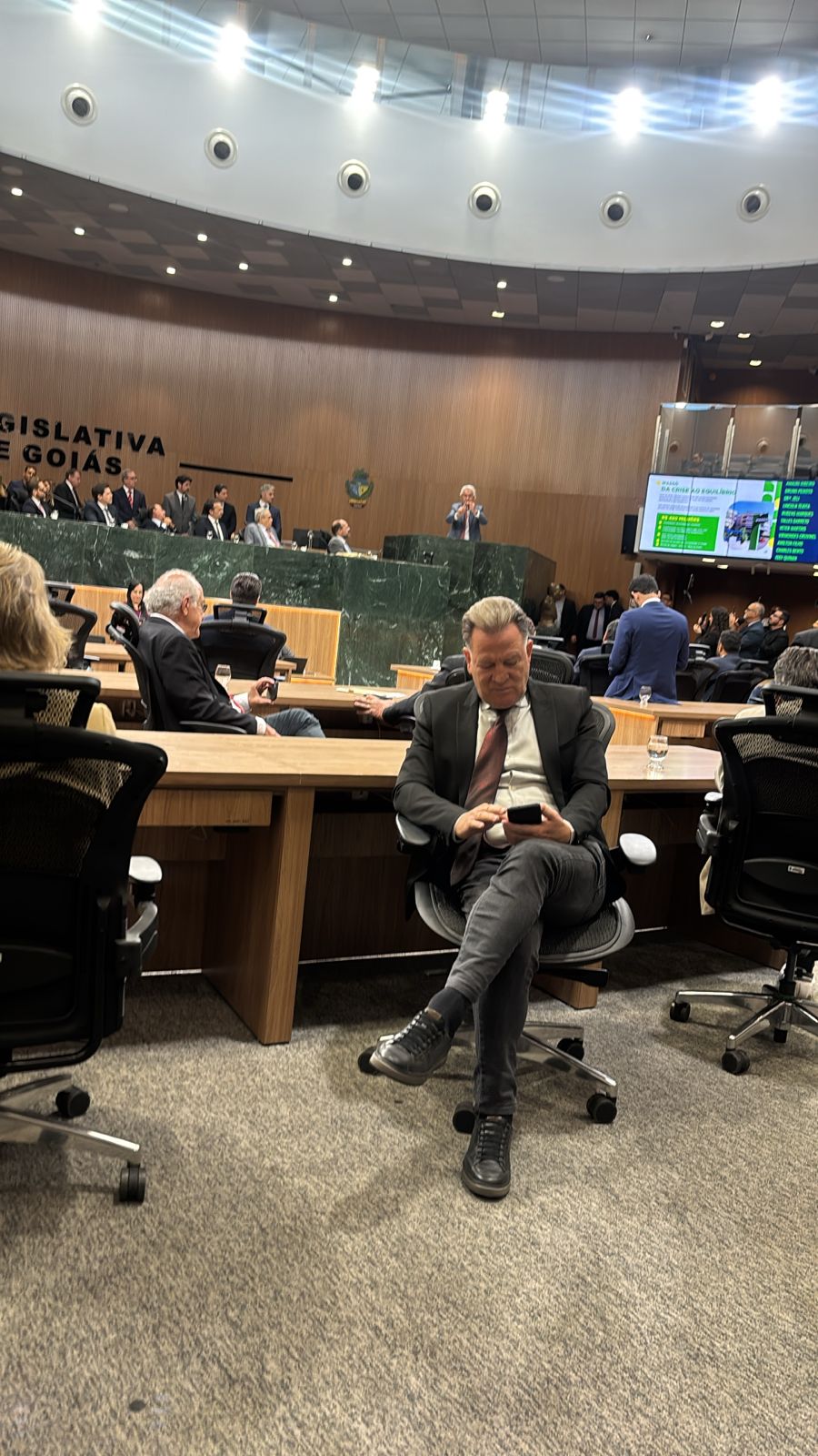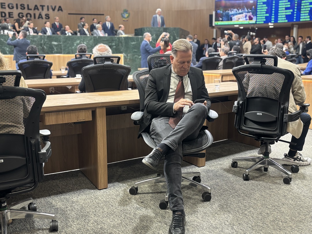 O deputado estadual Major Araújo (PL) permaneceu de costas durante o discurso do governador Ronaldo Caiado na Assembleia Legislativa de Goiás (Alego).