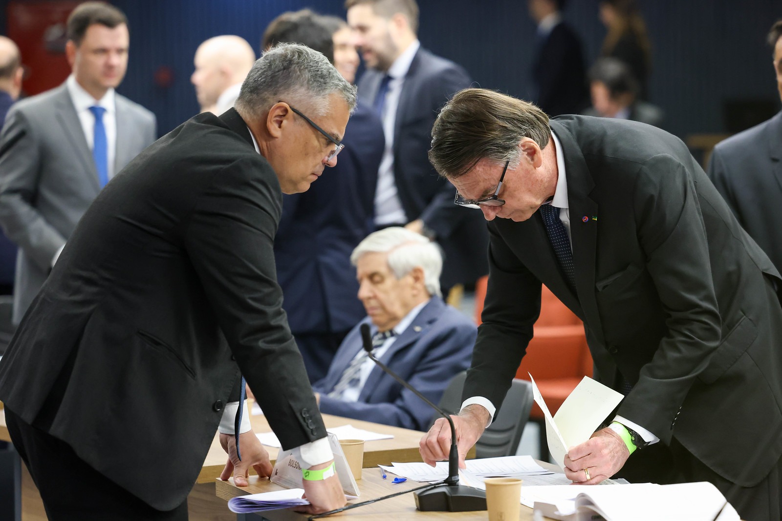 As imagens registram o momento em que Bolsonaro ficou frente a frente com o ministro Alexandre de Moraes, responsável pela condução do inquérito.