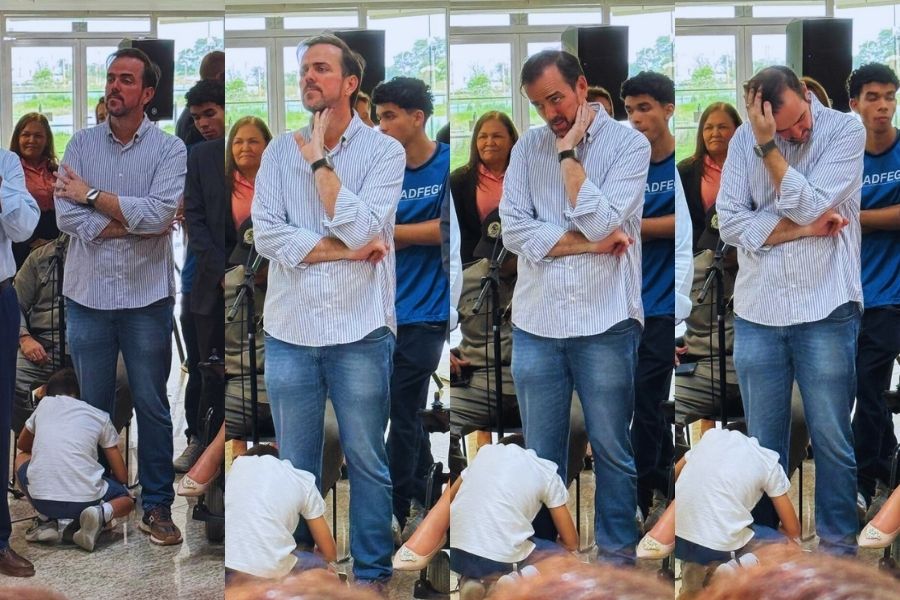 Ao longo do evento, o ex-prefeito manteve postura mais reservada, com gestos repetitivos que não passaram despercebidos.