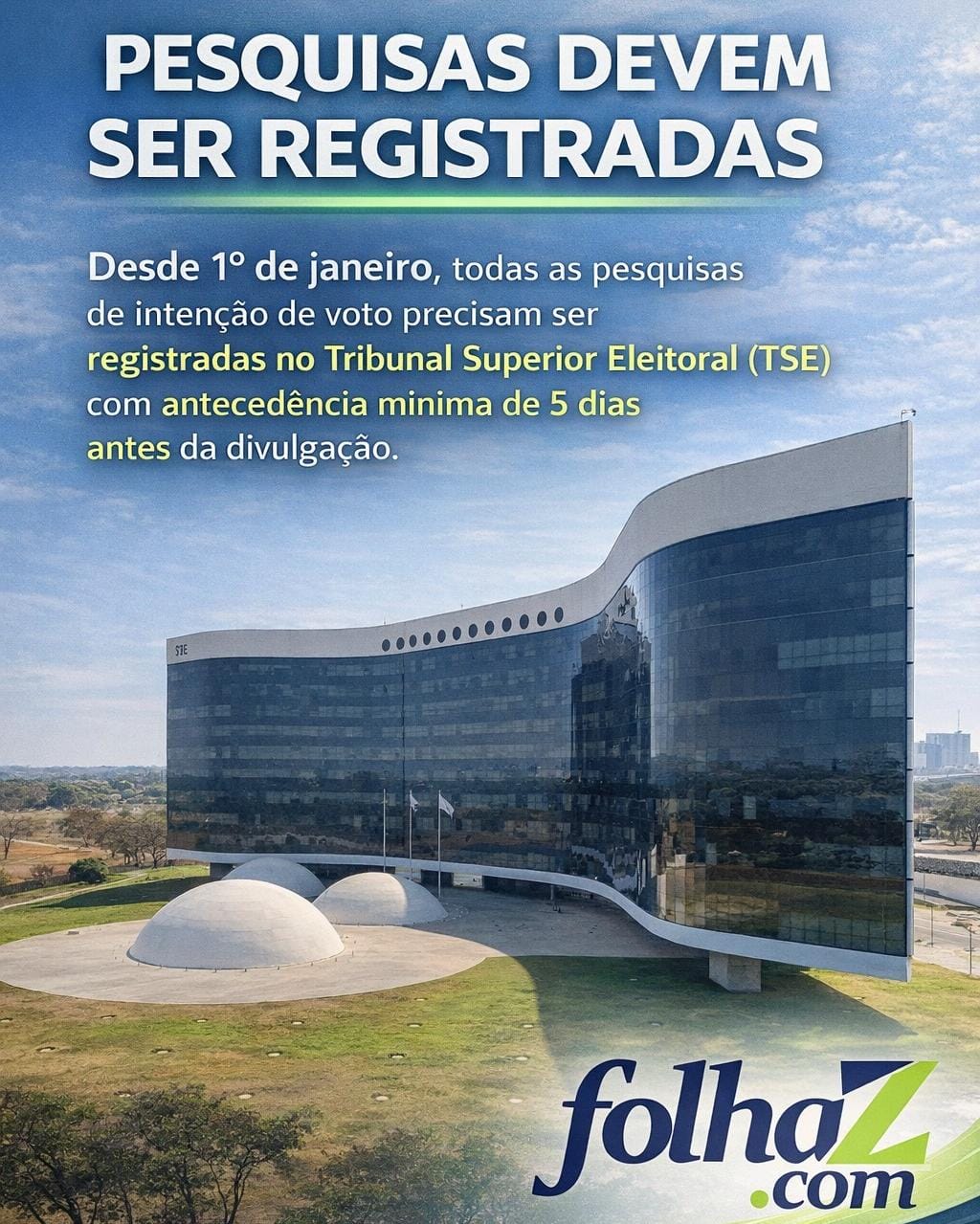 Desde 1º de janeiro, todas as pesquisas de intenção de voto precisam ser registradas no Tribunal Superior Eleitoral com antecedência mínima de 5 dias antes da divulgação.