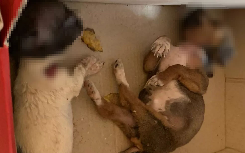 Após praticar a crueldade, o homem teria pendurado um dos filhotes no varal da casa e escrito na parede com o sangue dos animais: “O sangue deles não deu de vcs vai dá (sic)”.