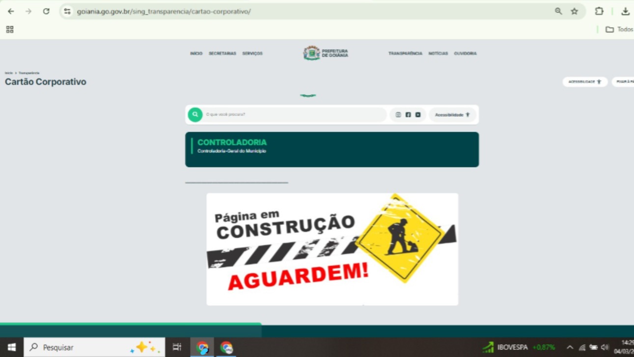 Desde a instituição do cartão corporativo, as despesas não estão disponíveis para consulta pública no Portal da Transparência da Prefeitura de Goiânia.