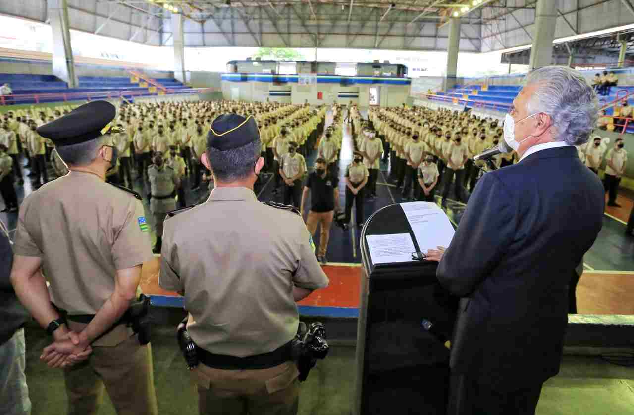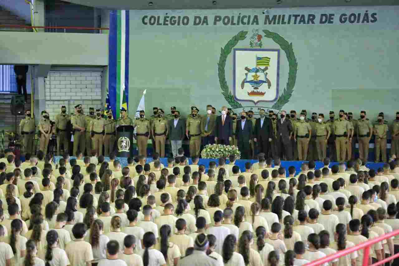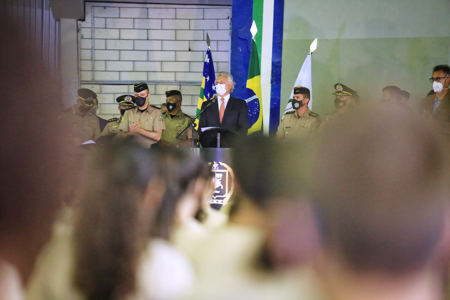 O governador Ronaldo Caiado participou da inauguração da reforma no Colégio Estadual da Polícia Militar de Goiás (CEPMG) unidade Hugo de Carvalho, nesta 5ª feira (11).