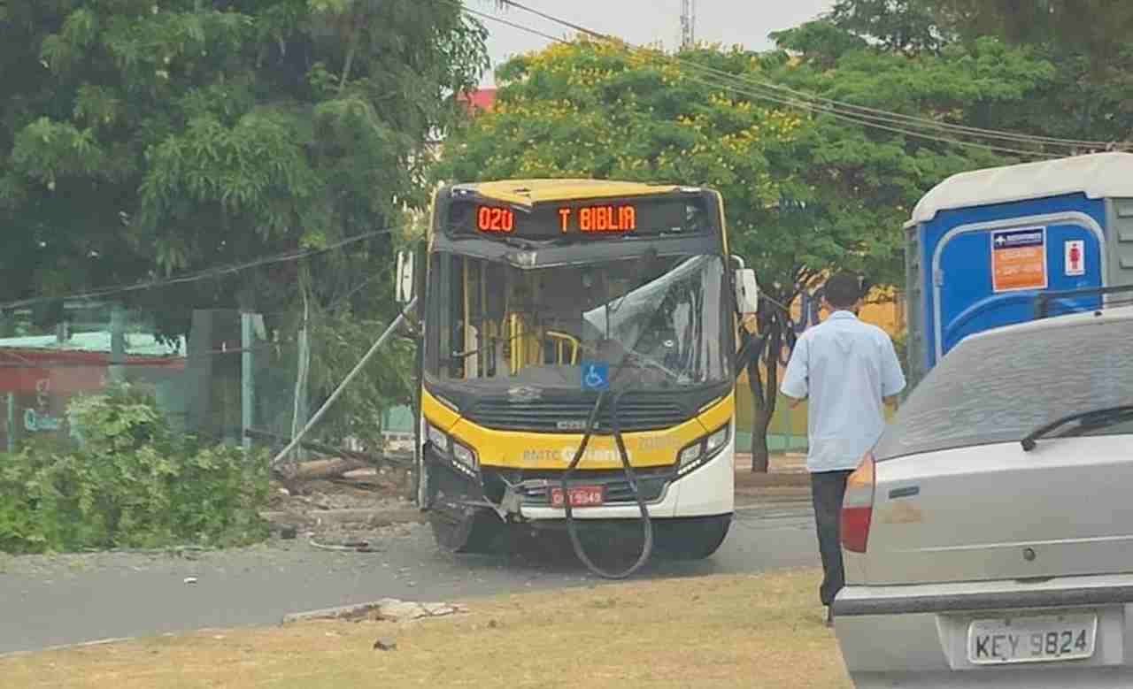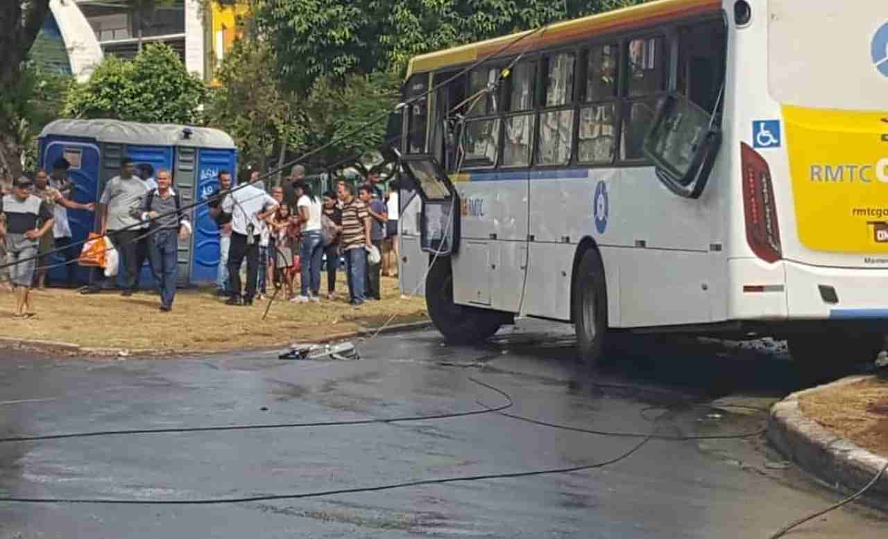 Motorista de ônibus do transporte coletivo, que fazia a linha Terminal Garavelo – Praça da Bíblia, perdeu o controle do carro ao realizar uma curva na Praça Universitária, em Goiânia, e colidiu contra um um posto de alta tensão.