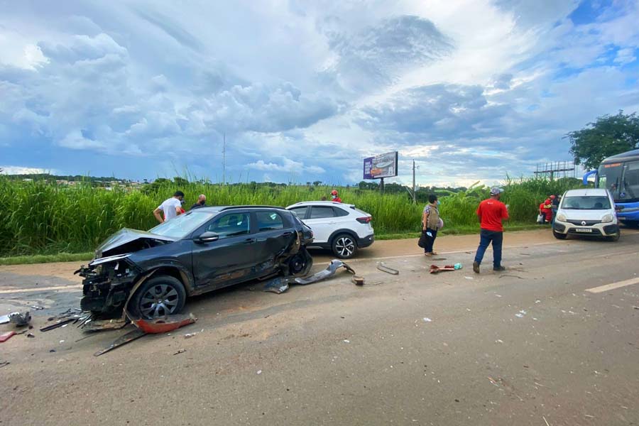 Uma perseguição terminou com vários carros envolvidos em um acidente na BR-153 na tarde desta 5ª feira (24).