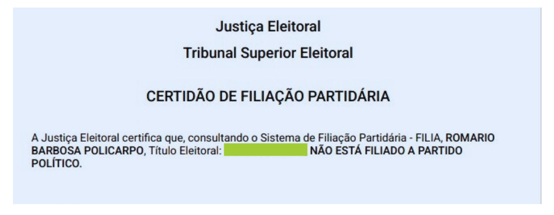 Em consulta feita pela reportagem da Folha Z no Tribunal Superior Eleitora (TSE), a desfiliação consta como registrada no dia 10 do último mês.