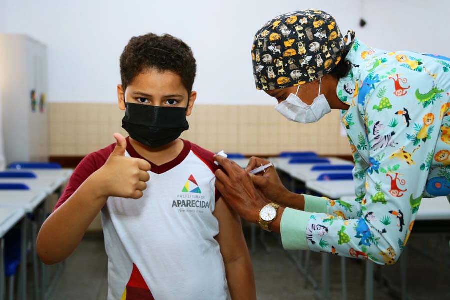A vacinação infantil itinerante nos colégios foi retomada em Aparecida de Goiânia.