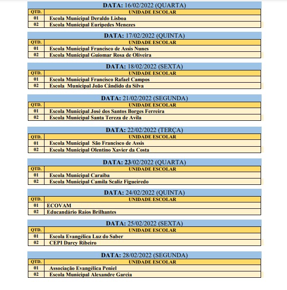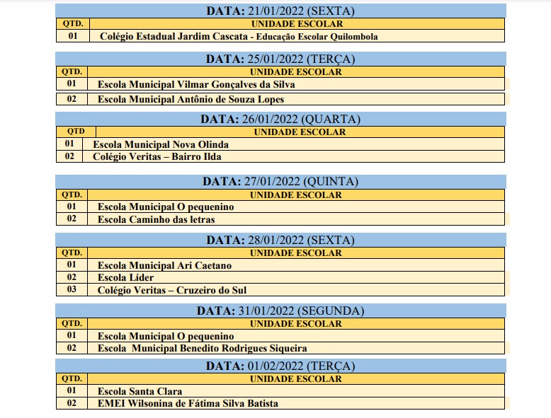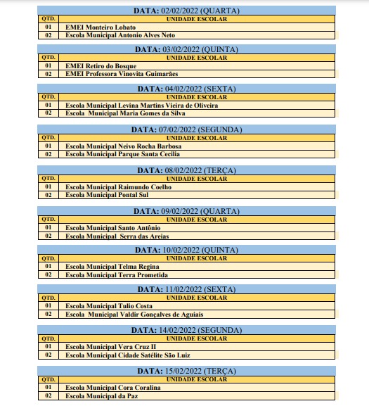 Confira o primeiro cronograma de visitas escolares para a vacinação contra a covid-19: