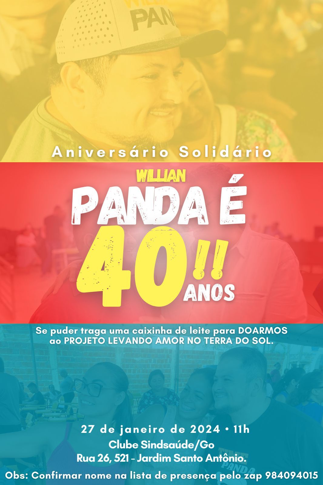 Para comemorar seus 40 anos, o vereador William Panda (PSB) fez uma festa de aniversário neste sábado (27), no clube do Sindsaúde, no Jardim Santo Antônio.