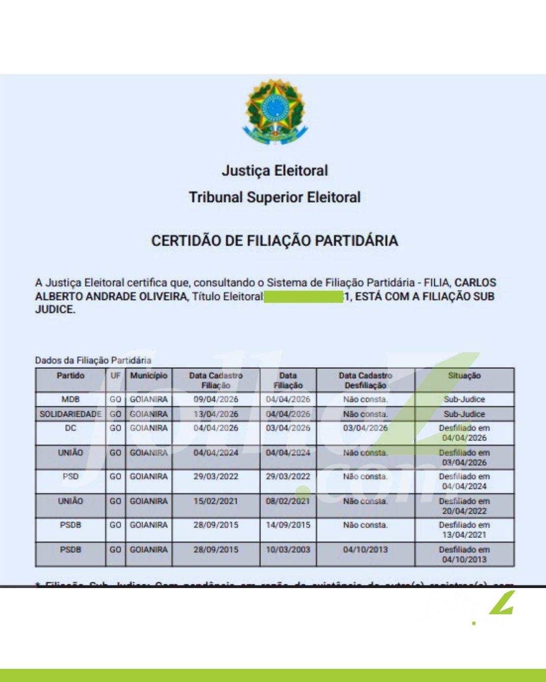 Antes, Carlão já constava com filiação ao DC, formalizada no sábado (3), véspera do encerramento do prazo.