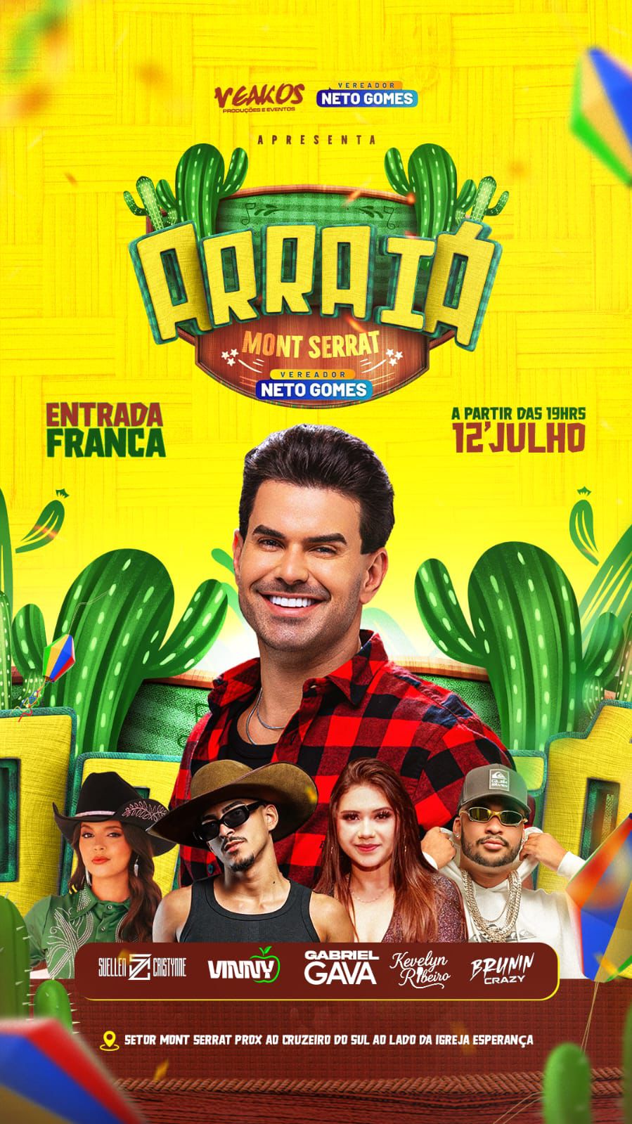 “É uma alegria enorme proporcionar momentos como esse para o nosso povo. O Arraiá do Mont Serrat é mais do que uma festa: é união, respeito à cultura e celebração da vida em comunidade”, afirmou o vereador Neto Gomes.