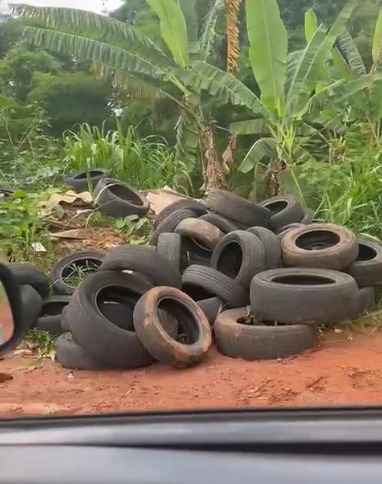 Entre eles, há grande quantidade de pneus, conforme mostra o vídeo enviado à redação, além de entulho, móveis velhos e até lixo doméstico.