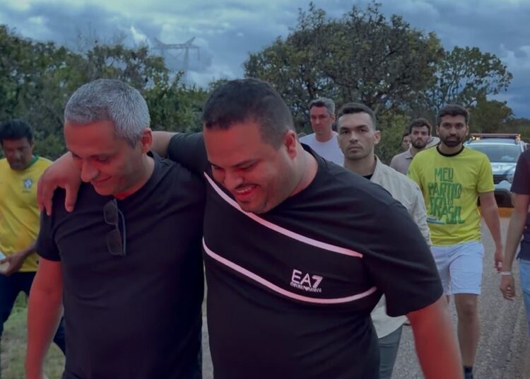 A comitiva conta com aliados do ex-presidente da República, como os deputados federais Gustavo Gayer (PL-GO) e André Fernandes (PL-CE).